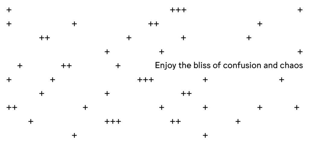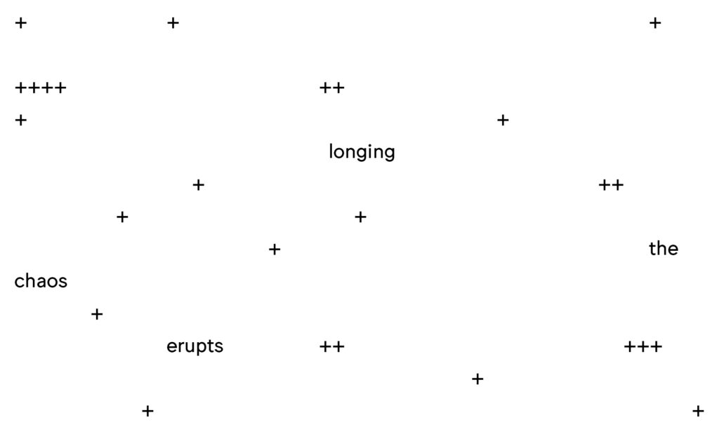 Non-binary does ++ not need to create new identity categories. + It embraces the chaos and questions the idea of a monolithic static self. My attraction and the specificities + that I found desirable + were and are partly culturally constructed + and have changed immensely compared to when I came out the + first time. The fragmented self consists of ever moving and changing +  pieces as we are never truly fixed in one ++ identity. Experiences and new knowledge can change us in meaningful ways that allow growth and a change in self perception. +++ Embracing a state of chaos and fluidity + might be scary and often + confusing + but it allows us to escape the feeling + of entrapment and having to dig + ever deeper trenches to define what exactly we are. This entrenching can become + overbearing and stops us from seeing each other in our humanity. Renouncing the static self allows us to love and live freely. +                                                  +++                          +